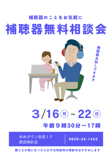 2026年3月16日(月)~22日(日)補聴器相談会開催いたします。